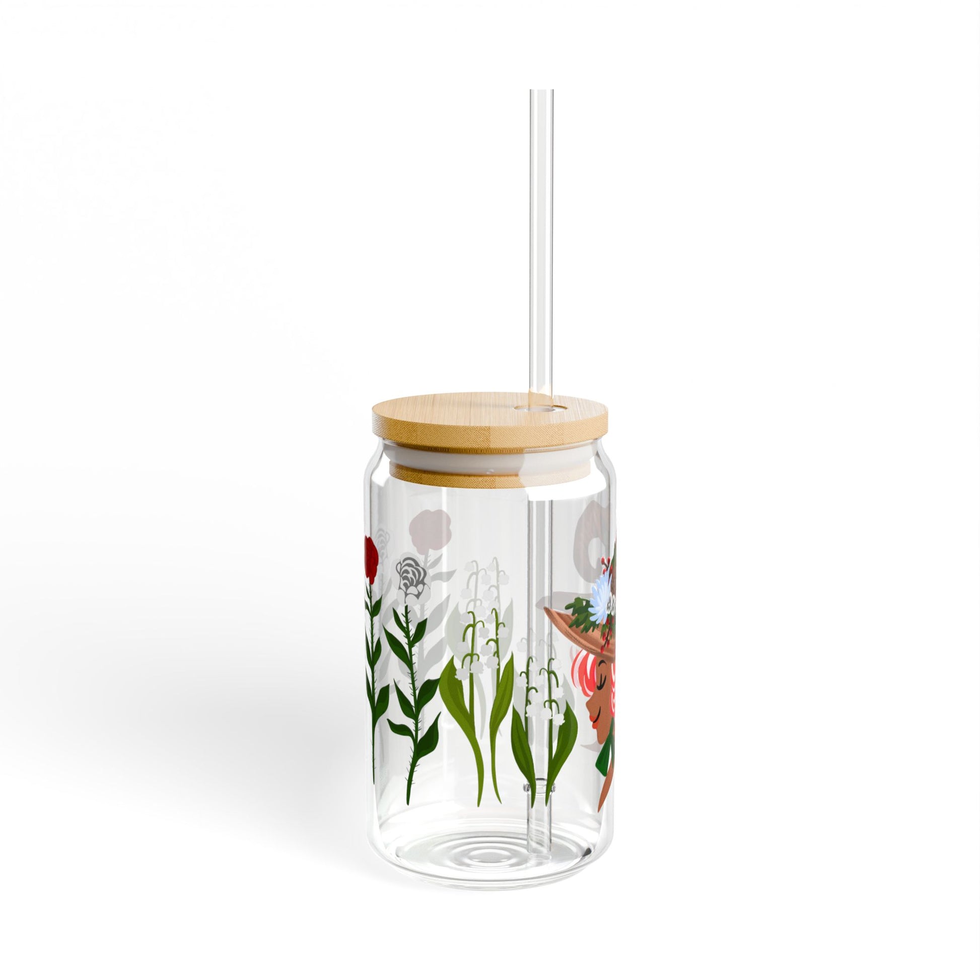 Sip slowly and let this 16oz sipper glass carry you to a quiet garden afternoon. Clear tempered glass shows off a hand-painted floral design and a whimsical witch wearing a flowered hat — bright, crisp colors that stand out with every drink. Choose the natural bamboo push lid and clear Tritan straw for easy sipping on the go, or keep it open for a casual, mindful moment at home. The glass feels clean and simple in your hand, the straw durable for repeated use, and the whole piece fits into a tabletop full of potted plants and sunlit corners. Made in the USA with globally sourced materials and BPA-free components, it’s vibrant, functional, and made to last with gentle care (hand wash only).